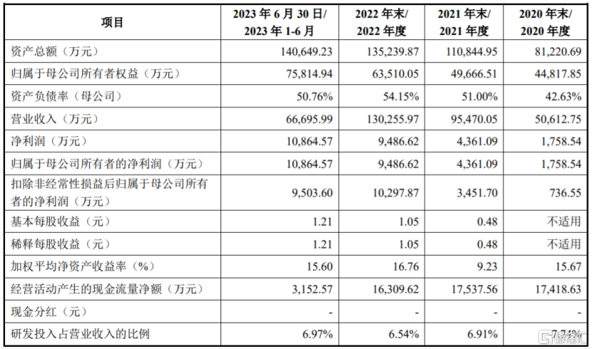 业绩方面,招股书显示,2020年至2023年1-6月,灿芯股份的营业收入分别约5.06亿元、9.55亿元、13.03亿元、6.67亿元,净利润分别约1758.54万元、4361.09万元、9486.62万元、1.09亿元。