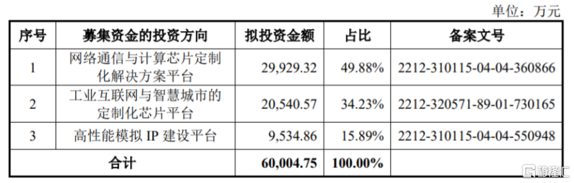 本次申请上市,灿芯股份拟募集资金用于网络通信与计算芯片定制化解决方案平台、工业互联网与智慧城市的定制化芯片平台、高性能模拟IP建设平台。