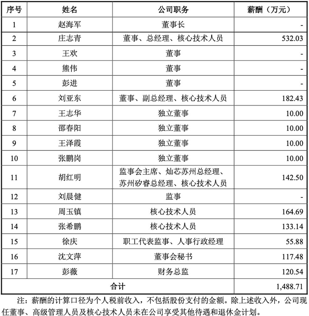 灿芯现任董事、监事、高级管理人员及核心技术人员2022年在公司领取的薪酬情况如下: