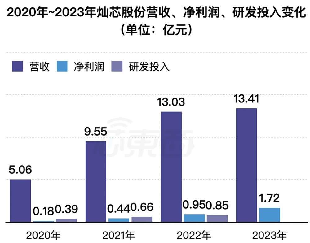 从2020年到2023年,灿芯股份四年累计营收为41亿元,累计净利润为3.29亿元。