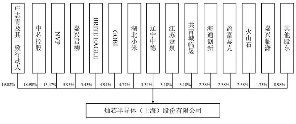 灿芯股份无控股股东、实际控制人,共有29名机构股东、3名自然人股东,第一大股东庄志青及其一致行动人合计持股比例为19.82%。