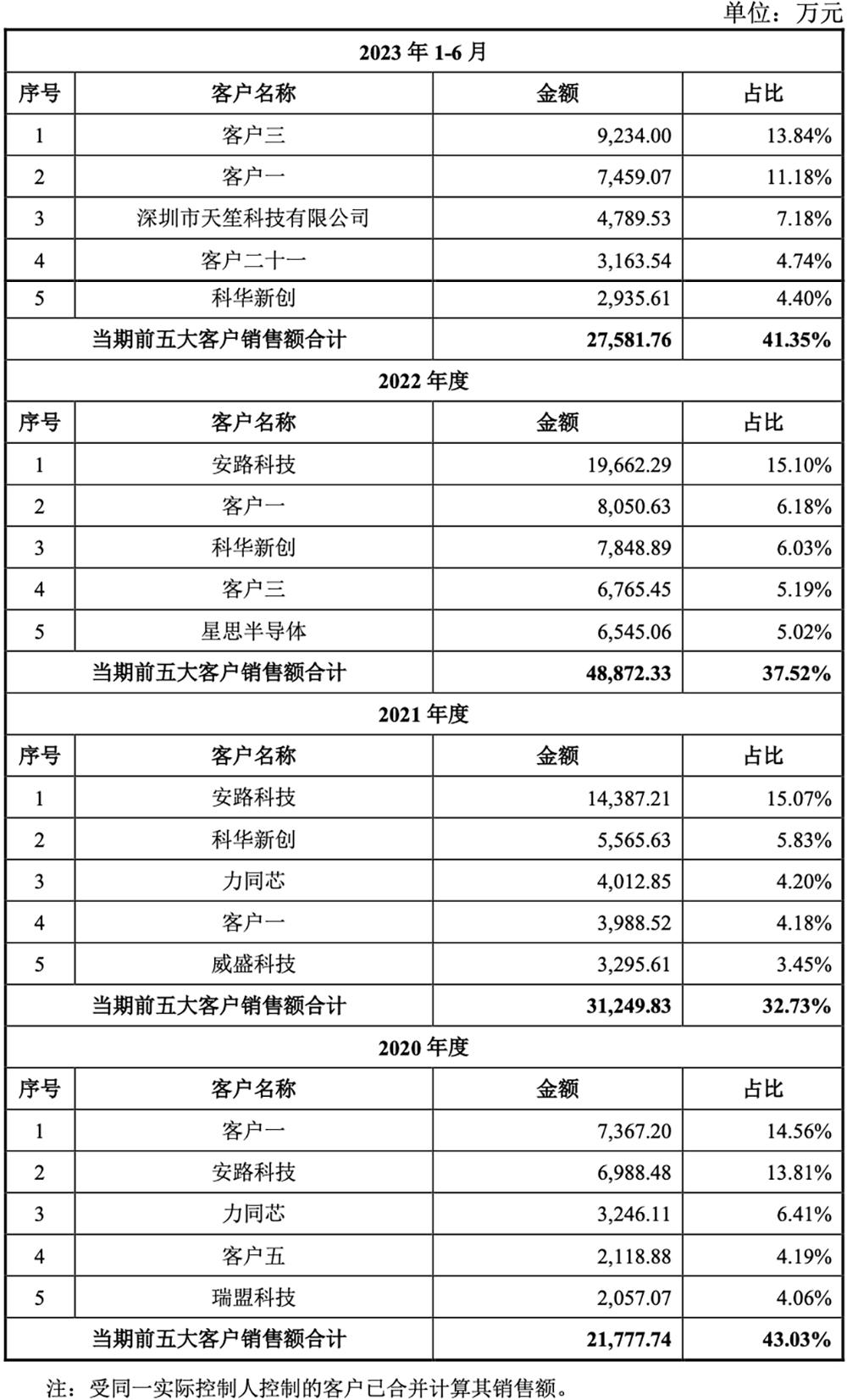 报告期内,灿芯主要向前五大客户销售晶圆、芯片及光罩,不存在向单个客户的销售比例超过总额的50%的情形。