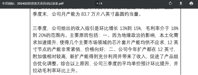 但中芯国际相比于联电、格芯等厂商能率先第二季度环比改善,同时在会议中表示第三季度同样将环比增长主要归功于两方面原因。
