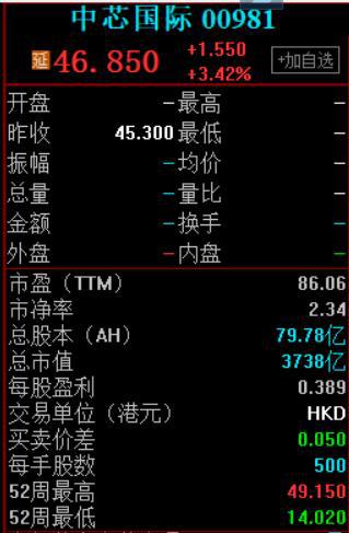 2月12日,中芯国际AH股双双高开,截至发稿,中芯国际A股涨超2%,H股涨超3%。