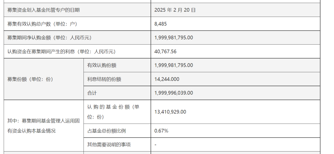 具体来看,建信科创综指ETF的有效认购申请确认比例为67.058%。2月21日,建信科创综指ETF发布基金合同生效公告,建信基金运用固有资金认购了1341万元。