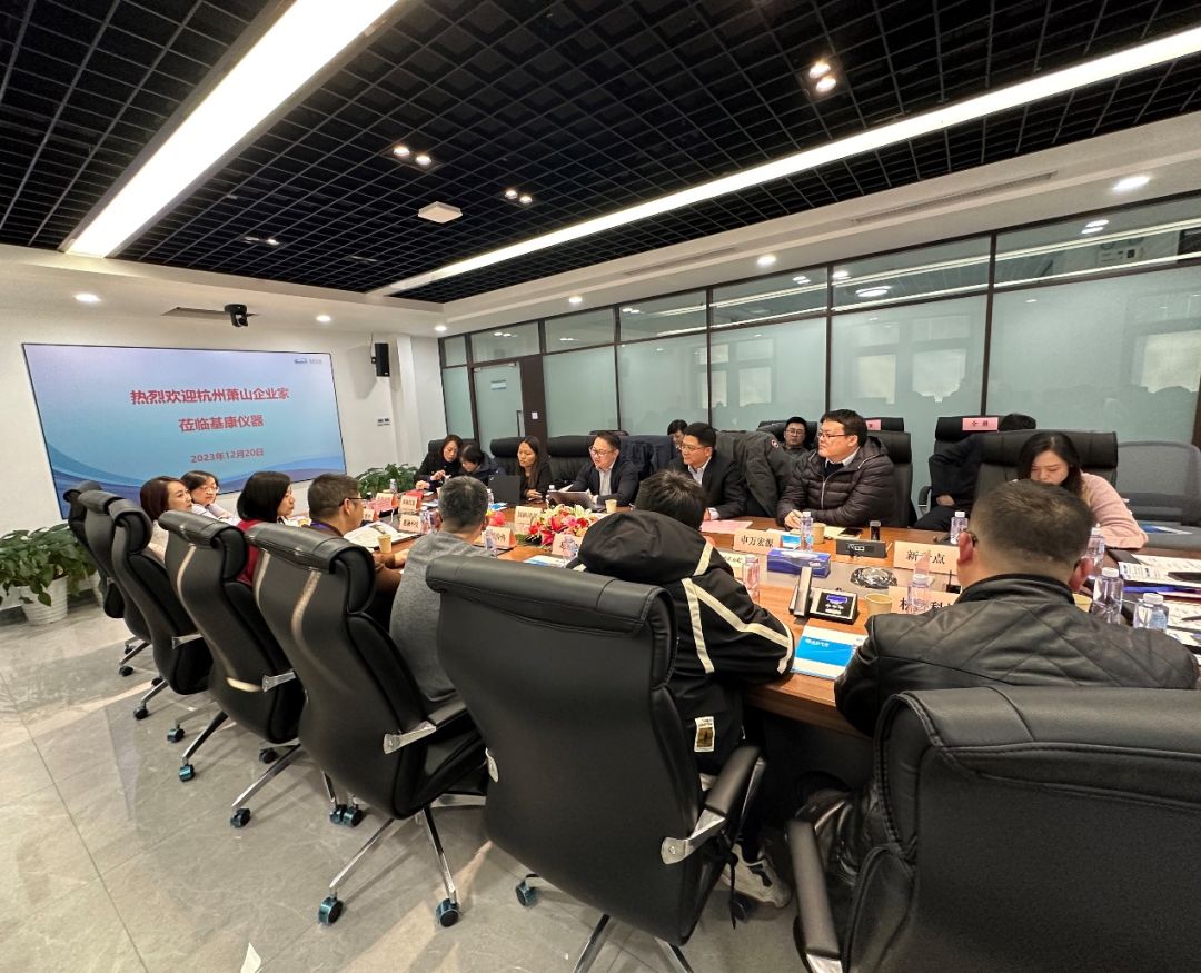 2023年12月20日,杭州萧山区“助企腾飞”企业上市培训交流团莅临基康仪器考察交流,交流团由杭州萧山区发展改革局副局长赵永强带队,成员包括杭州萧山区20余位拟上市企业的代表。基康仪器携上市中介机构申万宏源、国枫律师事务所、天衡会计师事务所接待了交流团。