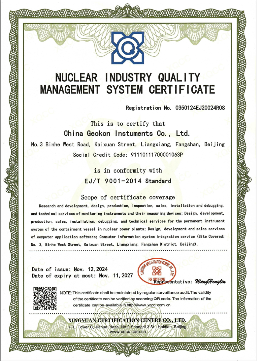 近日,基康仪器股份有限公司(简称“基康仪器”)顺利通过了核工业质量管理体系认证。