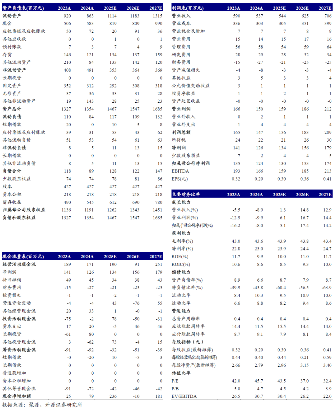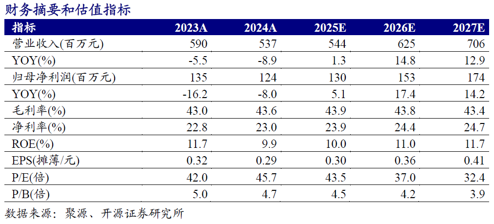 公司发布2024年报与2025年一季报,2024年实现营收5.37亿元,同比下滑8.89%,归母净利润1.24亿元,同比下滑8.00%,毛利率43.58%;2025Q1公司实现营收1.26亿元,同比下滑8.80%,归母净利润2903.25万元,同比下滑16.72%。考虑到需求下降、印度产业调整等因素的影响,我们下调2025-2026年并新增2027年盈利预测,预计2025-2027年归母净利润为1.30(原1.63)/1.53(原1.87)/1.74亿元,对应EPS为0.30/0.36/0.41元/股,对应当前股价PE为43.5/37.0/32.4倍,看好募投放量与新原料药潜力,考虑到估值调整为“增持”评级。