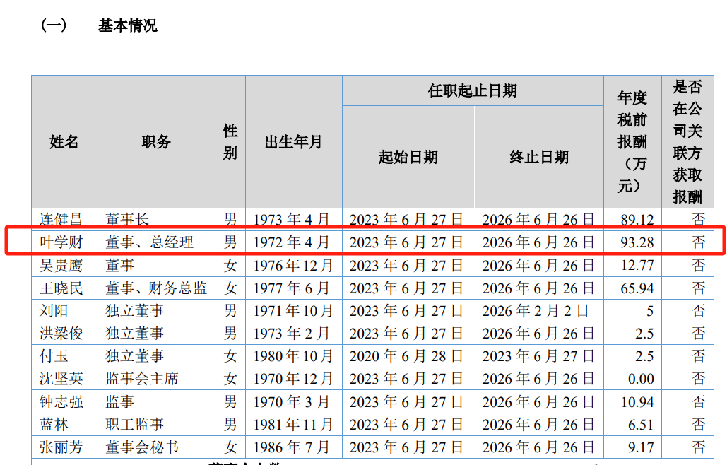 据查,叶学财2023年度税前报酬为93.28万元,高于董事长。叶学财出生于1972年,曾担任公司总经理助理等职务。2022年3月18日,龙竹科技拟任命叶学财为公司董事。
