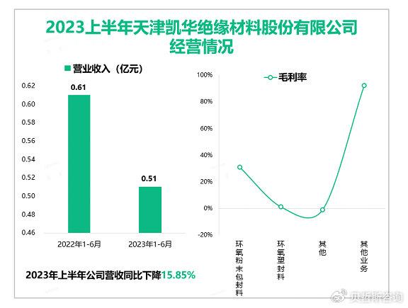 2023年1-6月,凯华材料实现营业收入0.51亿元,与去年同期相比下降15.85%。主要原因是部分下游客户订单减少。公司实现毛利率29.87%,与去年同期的24.66%相比,毛利率上升 5.21个百分点。公司进一步专注于开发高附加值和拥有广阔市场的新产品,2023年上半年投入研发费用266.10万元,同时持续提升现有产品技术水准。