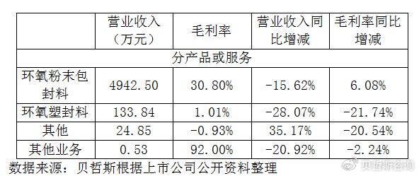 2023年上半年,环氧粉末包封料依然在公司产品中占有重要地位,而环氧塑封料是公司未来的业务增长点,随着产品性能的完善及相关市场的开发,环氧塑封料和其他业务的比重会逐渐增加,目前环氧塑封料业务处于业务培育和市场拓展阶段。