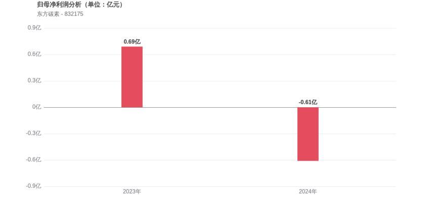 利润角度分析,2023年东方碳素实现归母净利润0.69亿元,2024年-0.61亿元。公司从盈利转为亏损,盈利能力明显恶化。