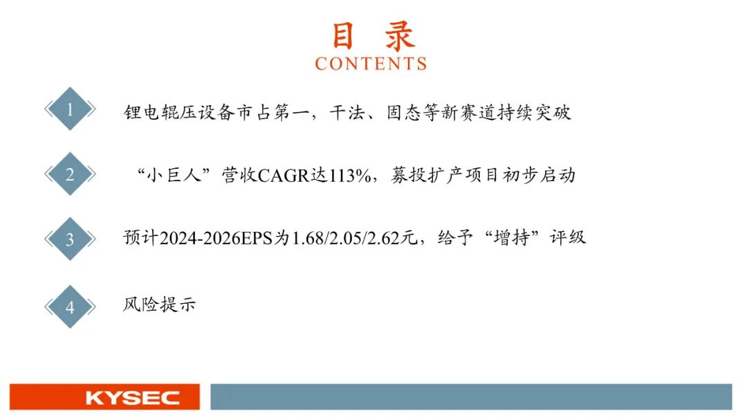 锂电辊压设备“小巨人”营收CAGR达113%,首次覆盖给予“增持”评级
