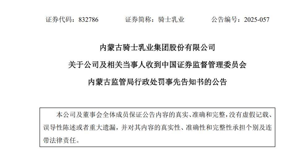 然而,近期骑士乳业却麻烦不断,接连深陷舆论的漩涡,近日,骑士乳业发布公告称,因期货投资亏损未及时履行信息披露义务,涉嫌信息披露违法违规,于2025年6月26日被中国证监会立案调查。
