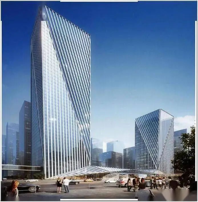深圳腾讯数码大厦230米+155米——两栋塔楼雕刻般的建筑造型灵感来自“水晶”,配以陶土和烧结玻璃材料为主的幕墙系统,整个外立面由数十个大大小小的斜切面构建而成。同时,围绕裙房和下沉式广场设置五座附属商墅,也分别由各具特色的斜面幕墙体系所构成,共同组成不同形态的“水晶”组团,让整个建筑群极具科技感。