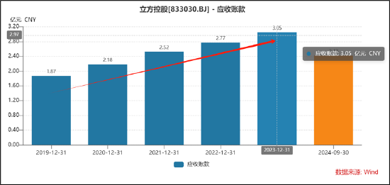 Wind数据显示,公司的应收账款由2019年的1.87亿元持续上涨至3.05亿元。