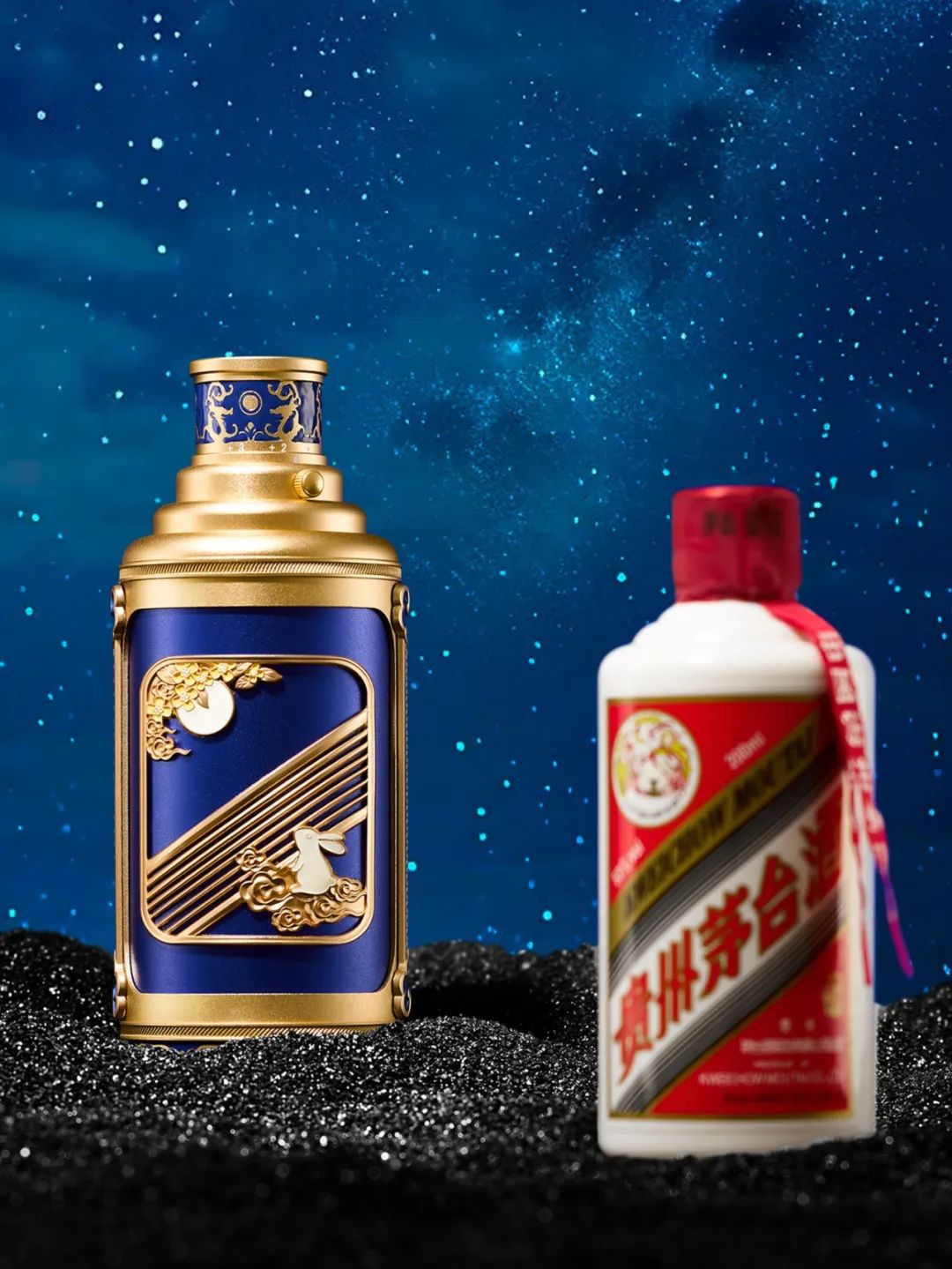正面标牌图案由茅台经典斜线标,婉若唐代月宫纹镜,背面标牌则采用飞天仙女、玉兔、桂花、圆月等元素相互交织,构成一幅浪漫气息的中秋佳节美景。