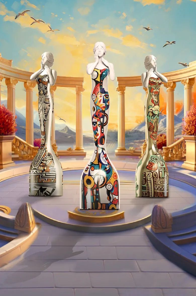 乙巳蛇年,乙属木,2025年是木蛇年,水生木,水润泽生木,因此设计师提炼水纹并运用在产品视觉上,结合商铜蛇造型体现金沙回沙酒蛇衔明珠,紧扣金蛇献礼·吉庆如意这一主题。