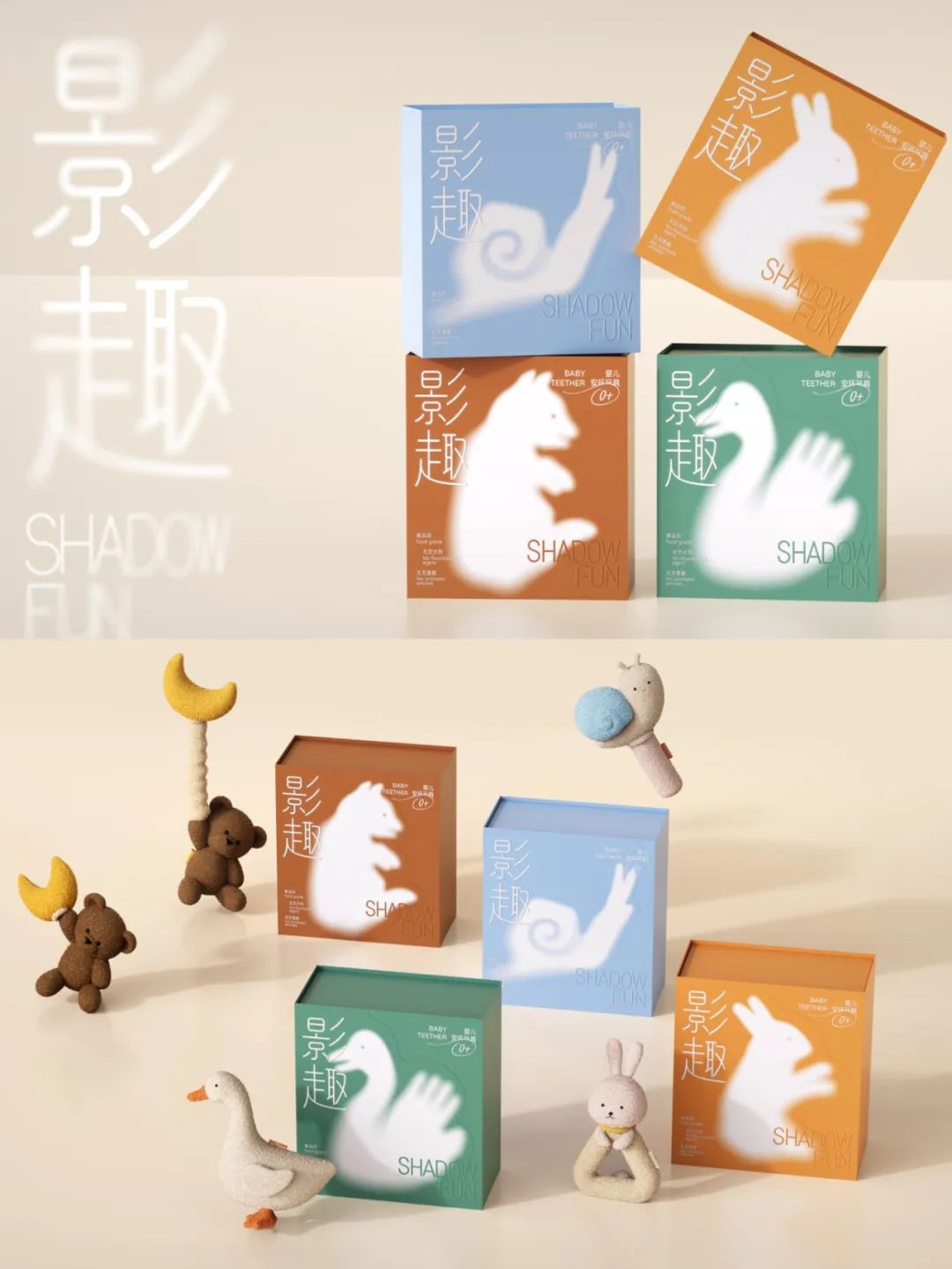 设计师从这个手影游戏中获得灵感,将手影与产品进行趣味结合,并将手势以线稿形式展示于「影趣」产品主画面上,更好的与婴儿达成互动。