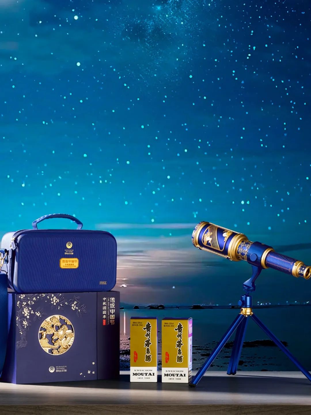 将望远镜作为此次中秋礼盒文创周边,以茅型瓶经典标志器型符号为灵感,望远镜外观延续茅台瓶型视觉,巧妙地将中秋这一文化元素融入其中。