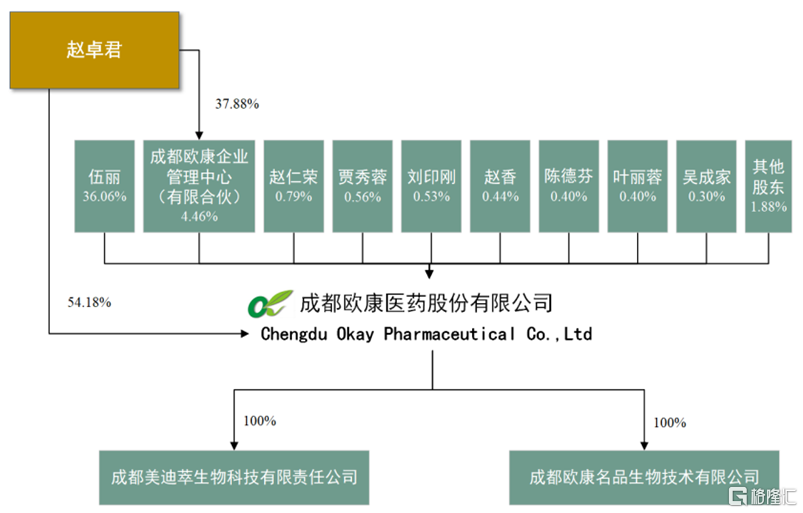 欧康医药成立于2010年,公司曾于2015年8月18日在全国股转系统挂牌公开转让。截至本次发行前,公司的控股股东、实际控制人为赵卓君,其直接持有公司54.18%股份,并通过欧康企管控制公司4.46%的股份,合计控制公司58.64%股份。