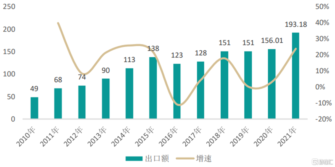 据前瞻产业研究院数据,2021年我国植物提取物行业出口额达193.18亿元,2010至2021年复合增长率达到13.29%,呈稳定增长趋势。