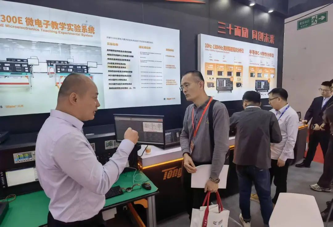 展会期间,同惠电子重点呈现了TH300E微电子教学实验系统与先进材料测试等多种解决方案,技术专家团队通过场景化演示与客户展开多维度交流,深度解析产学研融合应用案例。