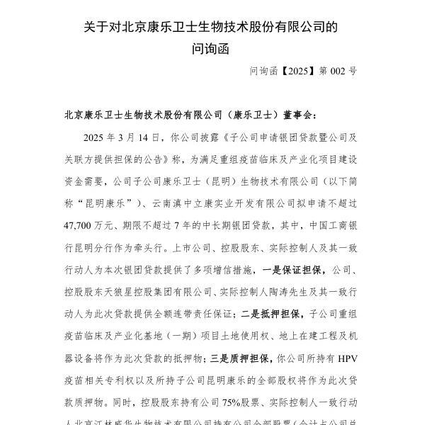 4月27日消息,北交所对北京康乐卫士生物技术股份有限公司(简称“康乐卫士”)发出问询函。北交所指出康乐卫士子公司的一些贷款及人员变动情况。