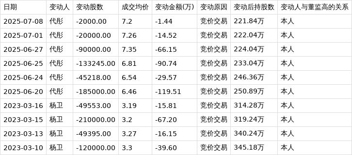 北交所公开信息显示,7月8日,中设咨询高级管理人员代彤在竞价交易公司股票,减持股数0.20万股,成交均价7.20元,变动金额1.44万元,变动后持股数为221.84万股。