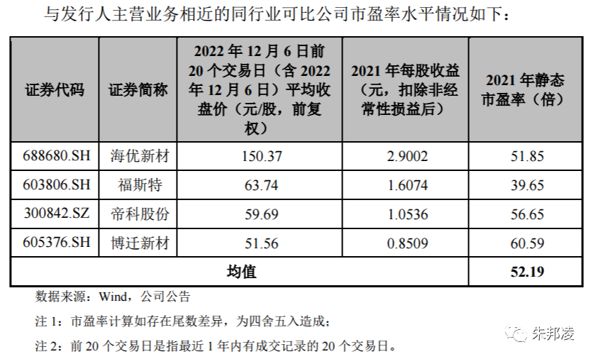 沪深可比公司大多为新能源光伏封装材料,估值较高,平均在50倍市盈率。