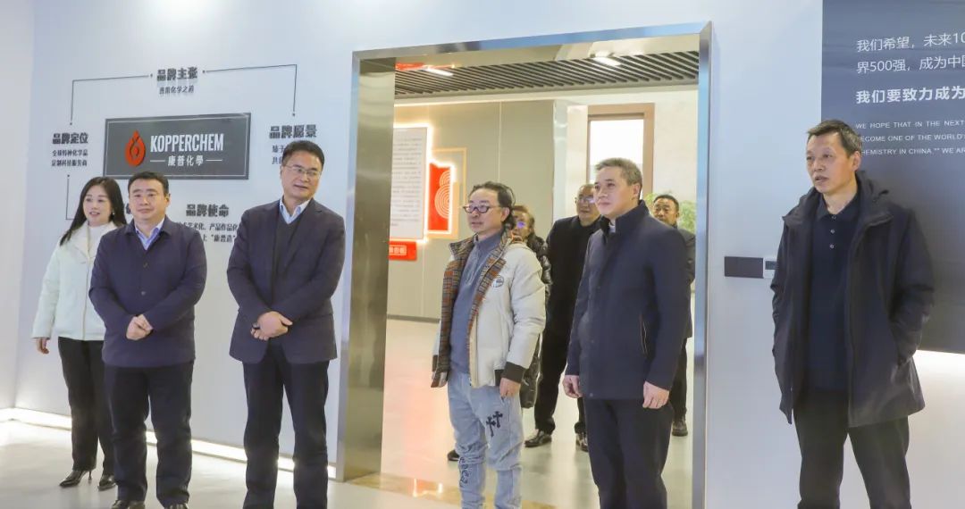 ▲市总工会党组成员、副主席申雄,区人大常委会副主任、区总工会主席李吉华带带队走进康普化学企业展厅