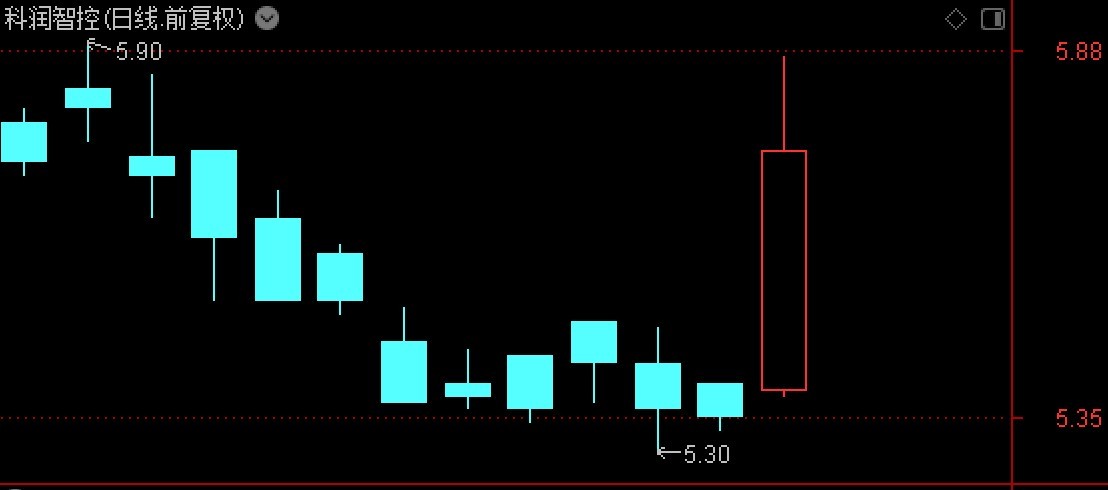 连续收出多根阴线的科润智控,今日大涨逾7%。