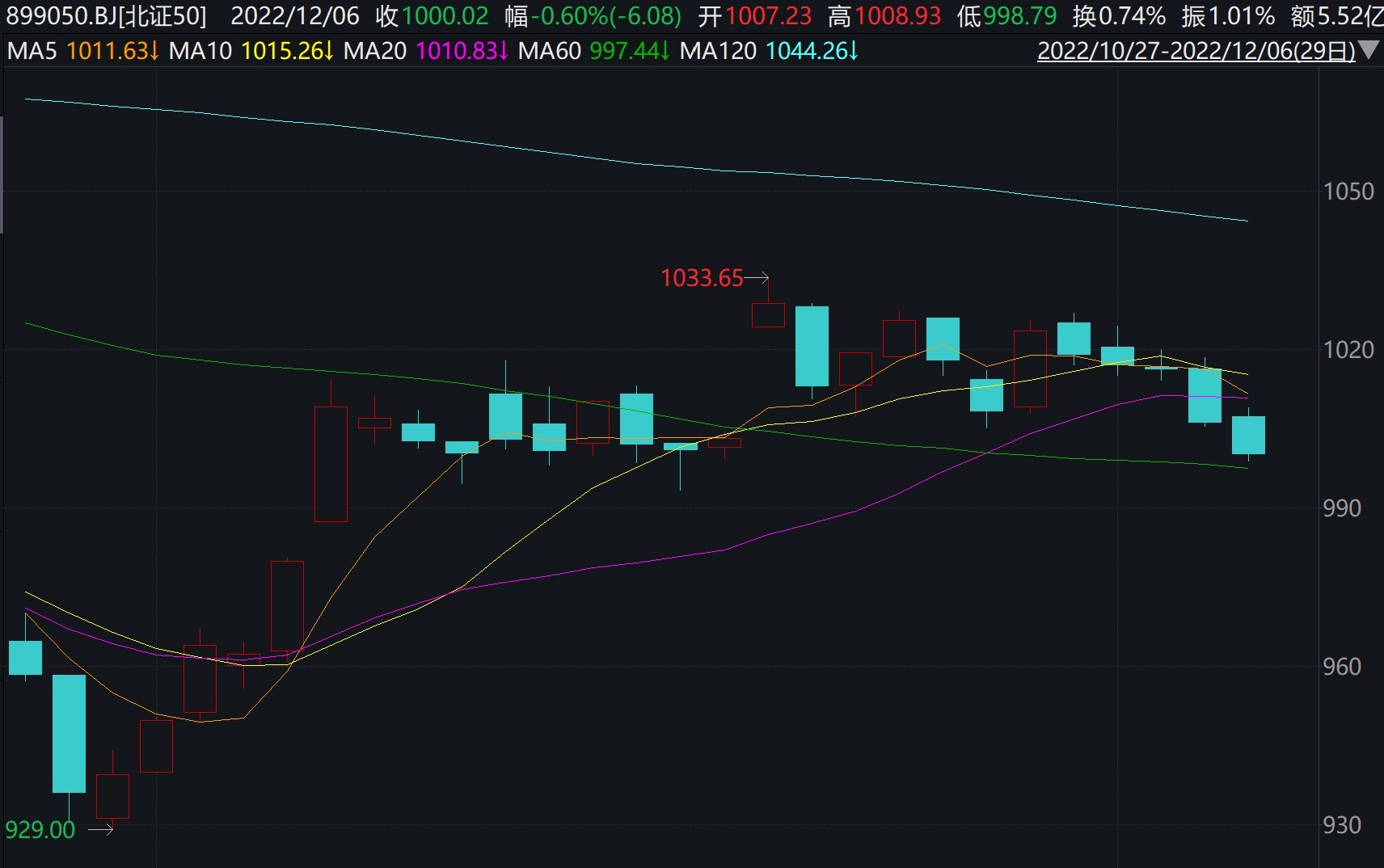 今日北证50成份指数下跌0.6%,连续5天下跌。