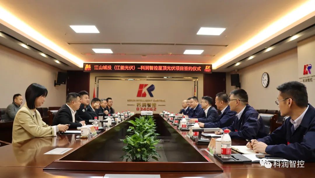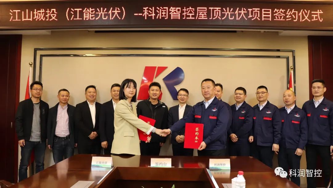 3月7日上午,江能光伏公司与科润智控公司屋顶光伏项目成功签约,双方将围绕光伏项目展开深度业务合作。签约仪式上,城投集团党委书记、总经理毛秋晨指出,此次合作实现了国企与民企的优势互补,为今后推动双方进入更广阔的发展平台打下了坚实基础。公司董事长王荣介绍了公司发展方向及规划,并表示对此次“联姻”充满信心和期待,希望今后有更多领域合作,促进双方更快更好发展。