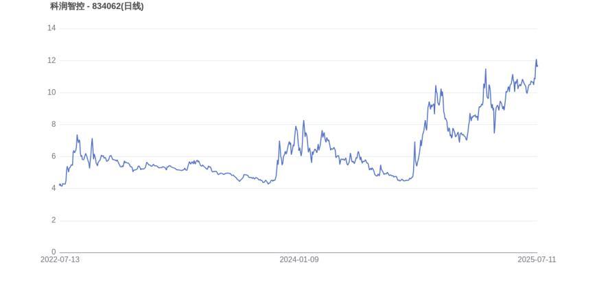 从上市首日至今,科润智控的市值实现了1.93倍的增长。2025年3月18日,科润智控的市值巅峰达到24.44亿元,股价也顺应升至13.1元。而至7月11日收盘,科润智控的股价为11.67元,市值为22.02亿元,相比峰值时期市值减少2.42亿元,市值蒸发了9.90%。