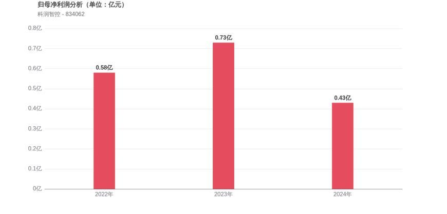 利润角度分析,2022年科润智控实现归母净利润0.58亿元,2024年0.43亿元。公司净利润在2024年出现明显下滑,盈利质量有所承压。