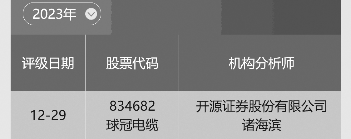 今天投研君给大家介绍一家属于电力设备行业的北交所上市公司。球冠电缆主营500kV及以下电线电缆,包括电力电缆、电气装备用电线电缆、裸电线三大类,产品广泛应用于电力、能源、交通、智能装备、石化、冶金、工矿、通讯、建筑工程等多个领域。据介绍,公司已成为浙江地区规模较大的电缆产品生产基地之一,连续被评为“中国电力电缆十大品牌”、“中国特种电缆十大品牌”,并在2022年荣获国家级专精特新“小巨人”企业称号。