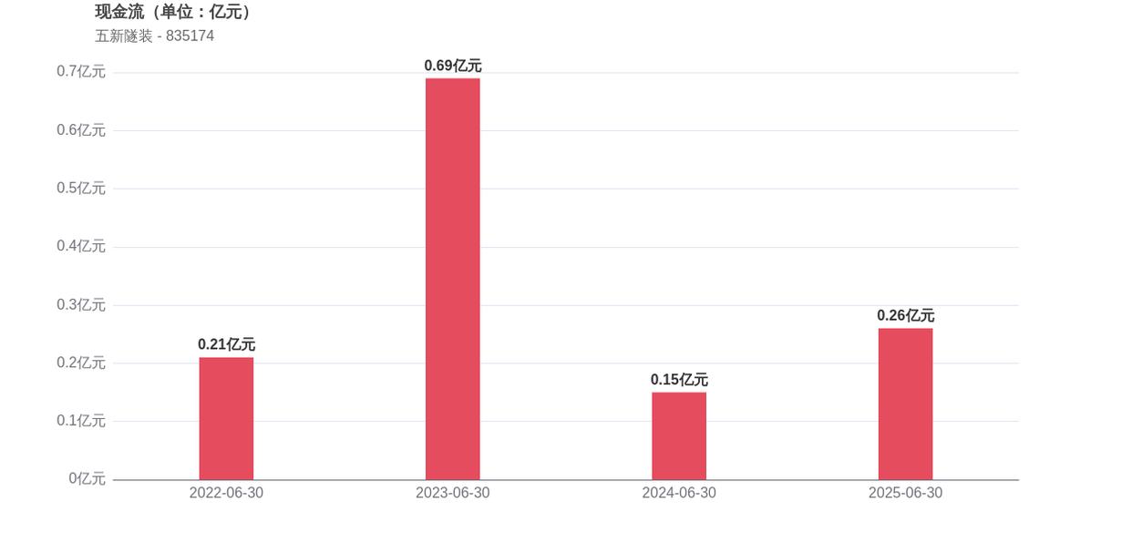 在经营稳健性方面,五新隧装面临存货周转效率略有放缓的压力,存货周转天数为98.85天,较上年同期增长1.4%。经营活动产生的现金流净额为0.26亿元,同比增长0.11%,现金流状况保持稳定。此外,2025年上半年的资产负债率为28.81%,同比下降5.38个百分点,这意味着公司财务杠杆有所降低,债务结构趋于优化。