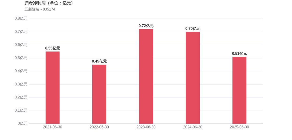 在2025年上半年,五新隧装的经营业绩出现双降,营业收入和归母净利润均同比下滑。