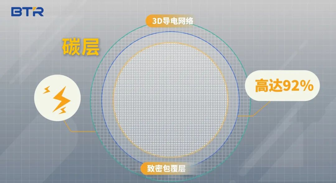 在硅颗粒表面构建双层包覆层,首效高达92%,碳层形成3D导电网络,导电性拉满。