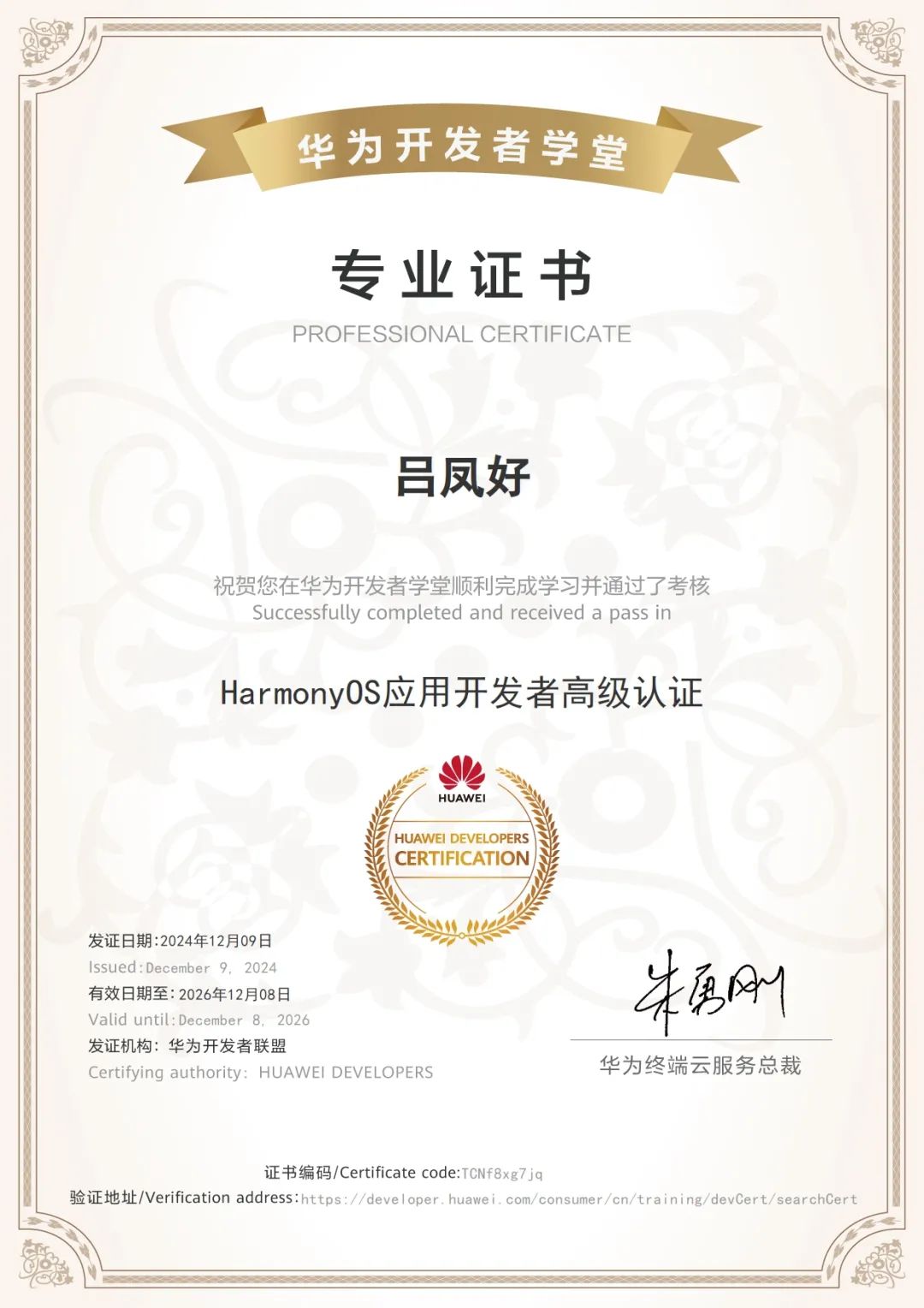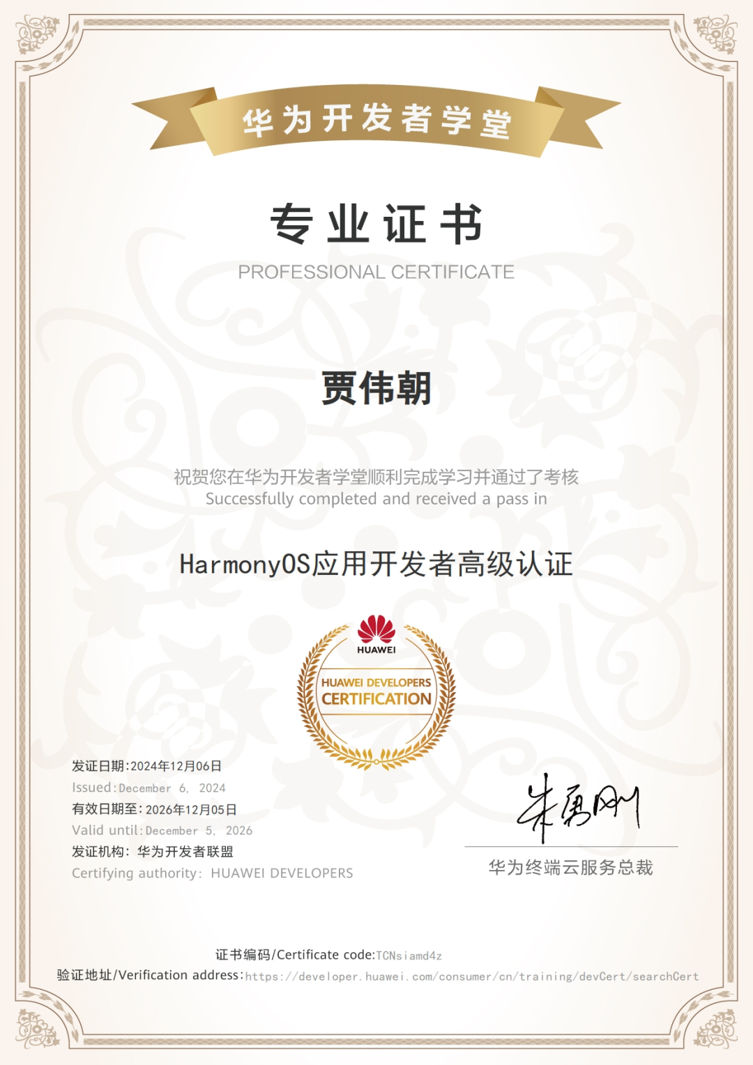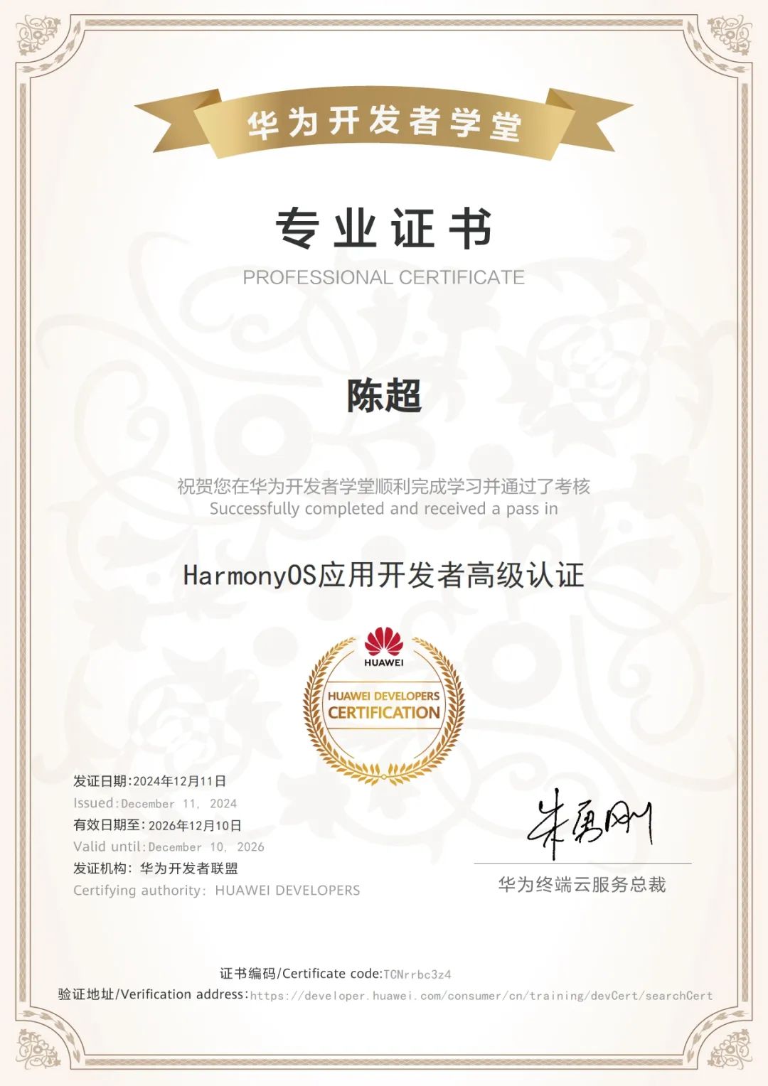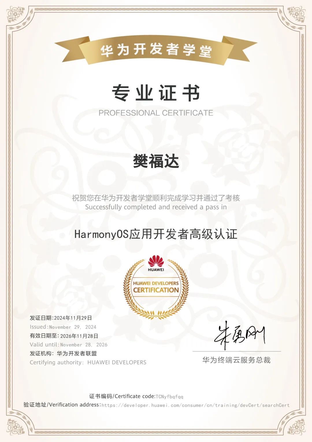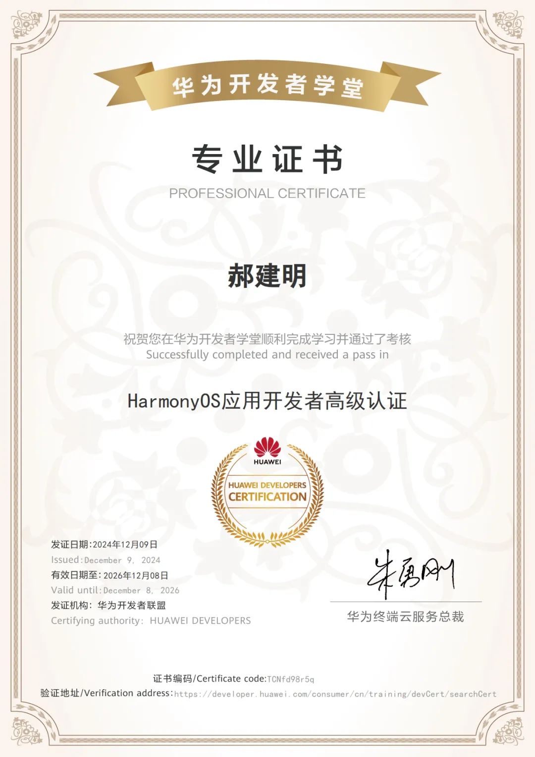 作为华为的长期合作伙伴,截止2024年年末,众诚科技在鸿蒙技术领域取得了显著成就,已有超过30名团队成员荣获鸿蒙应用开发高级认证证书。与此同时,我们成功携手华为实施多项鸿蒙应用项目。本次HarmonyOS开发服务商认证的通过,进一步彰显了团队在鸿蒙技术领域的深耕与突破。
