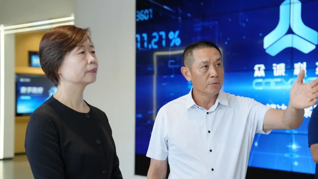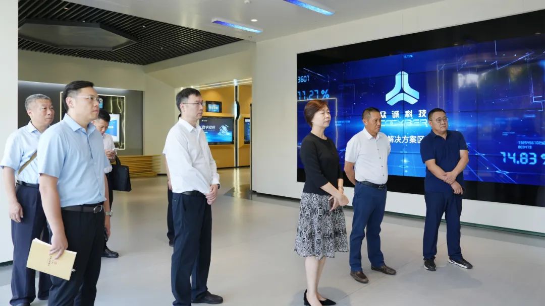 在梁侃董事长和梁友总经理的陪同下,史卫红书记一行参观了众诚科技的数智化展厅。嘉宾们深入了解了众诚科技在数字政府、智慧城市、企业数字化转型等领域的最新解决方案与典型案例,并亲身体验了人工智能、数字孪生、虚拟现实等前沿技术的实际应用效果。