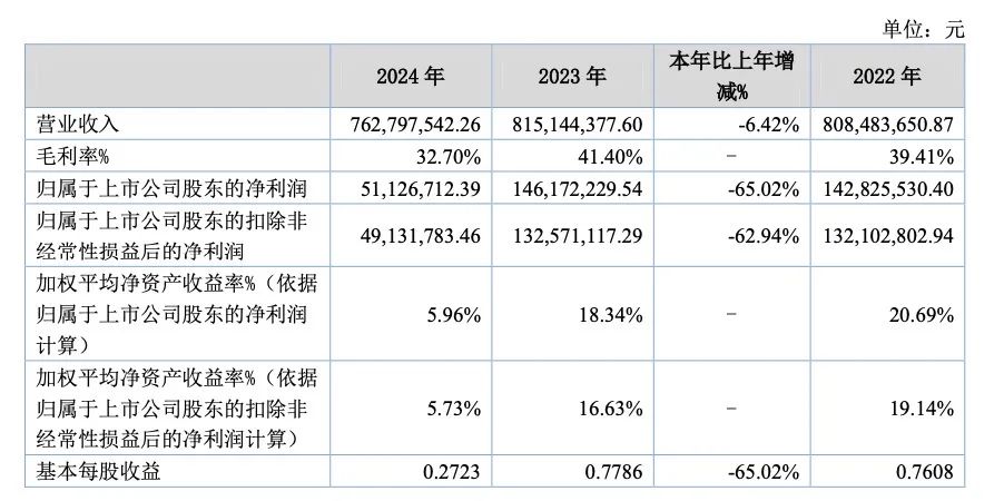 近日,富士达公布2024年度报告。报告期内,公司实现营业收入为7.63亿元,同比下降6.42%;归母净利润为5112.67万元,同比下降65.02%;扣非归母净利润为4913.18万元,同比下降62.94%;基本每股收益0.27元。