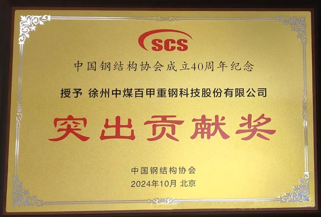 近期,正值中国钢结构协会成立40周年之际,徐州中煤百甲重钢科技股份有限公司(简称:百甲科技股票代码:835857)被中国钢结构协会授予“突出贡献奖”。该奖项授予为行业发展和协会建设做出重要贡献的集体。