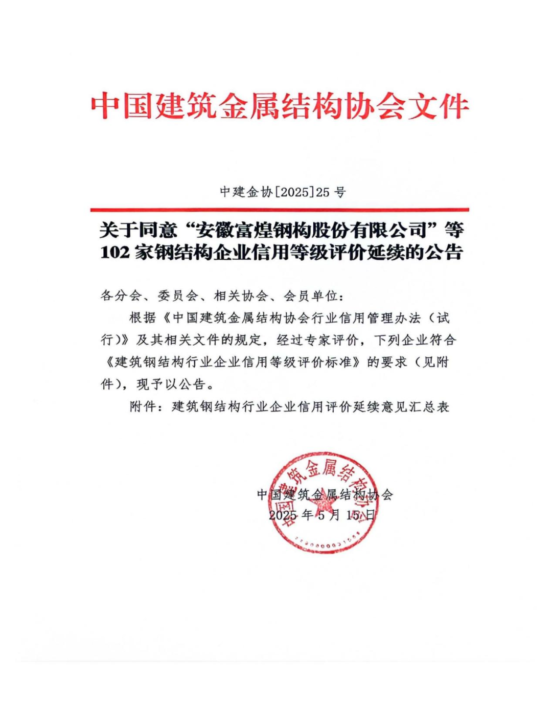 由中国建筑金属结构协会开展的2024年度建筑钢结构企业信用等级评价工作是行业信用体系建设的重要组成部分。此次信用评级推动提升了企业信用管理水平,进一步构筑诚实守信的经济社会环境。参与信用认证是百甲科技自觉接受社会监督,勇于承担责任、义务的承诺和宣示。