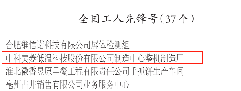 “全国工人先锋号”是中华全国总工会设立的,以“创一流工作、一流服务、一流业绩、一流团队”为活动内容的荣誉称号,每年评选一次。中科美菱制造中心整机制造厂始终秉承安全生产、提质增效、以建一流团队、创一流业绩为目标,不断开拓进取、创新发展。