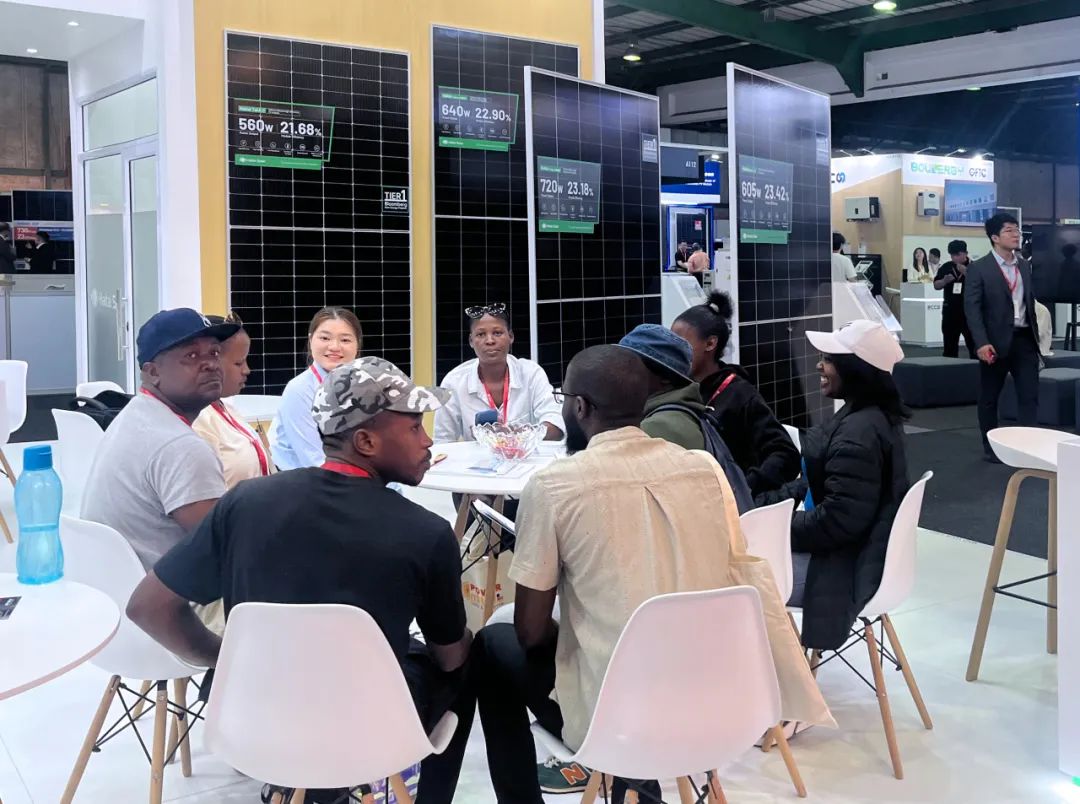 南非位于非洲大陆的最南端,大部分地区每年平均日照时间2500小时以上。结合南非市场需求,海泰新能展出560W单玻组件、595W双玻N型组件、720W双玻0BB组件以及640W双玻0BB组件。与常规组件相比,海泰新能N型组件具有更长的少子寿命,更高的效率,更低的工作温度,在相同工况下,能够带来更少的温升损失。此外,海泰新能N型组件具有高双面率,可大幅优化发电能力。