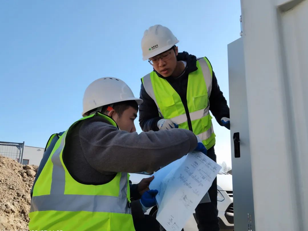 除了提供满足欧洲技术标准要求的储能整体解决方案外,海泰新能还为客户提供全生命周期的售后技术服务。自系统调试至并网投运,技术团队仅用15天时间就完成了客户预期2个月的现场工作量,充分体现了海泰新能的高效响应速度和团队执行实力。并网完成后,团队还为客户提供现场操作培训与考核服务,确保其具备独立的调试能力,解决用户日常维护后顾之忧。