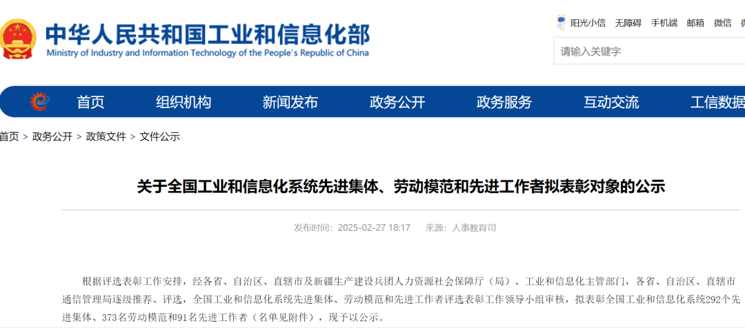 据了解,去年,人力资源社会保障部和工业和信息化部联合启动全国工业和信息化系统先进集体、劳动模范和先进工作者评选表彰活动。先进集体要求在促进工业稳增长、提升产业链供应链韧性和安全水平、推进产业科技创新和产业结构优化升级、推动人工智能赋能新型工业化、推动工业绿色发展、提升企业综合实力和竞争力等方面贡献突出或成效显著。
