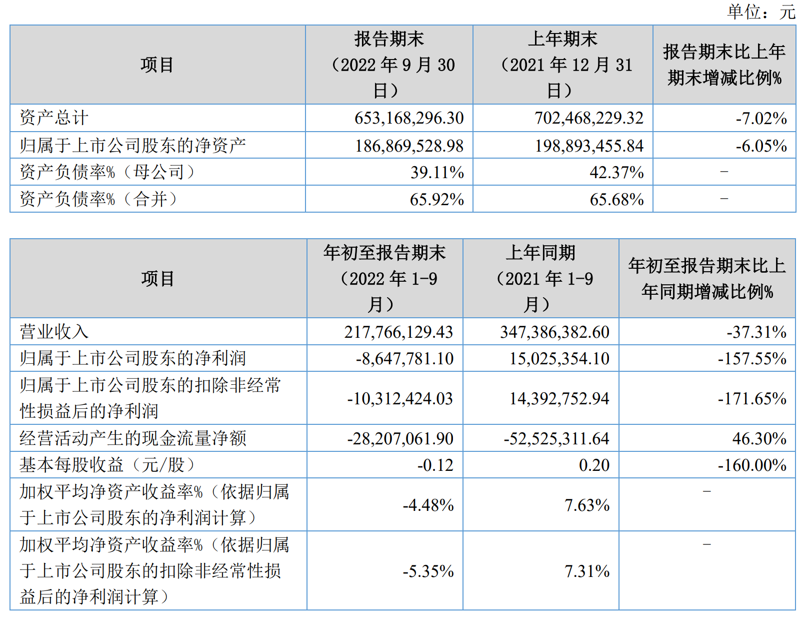公告显示,旭杰科技前三季度实现营业收入2.18亿元,较去年同期减少37.31%。归属于上市公司股东的净利润-864.78万元,较去年同期减少157.55%。